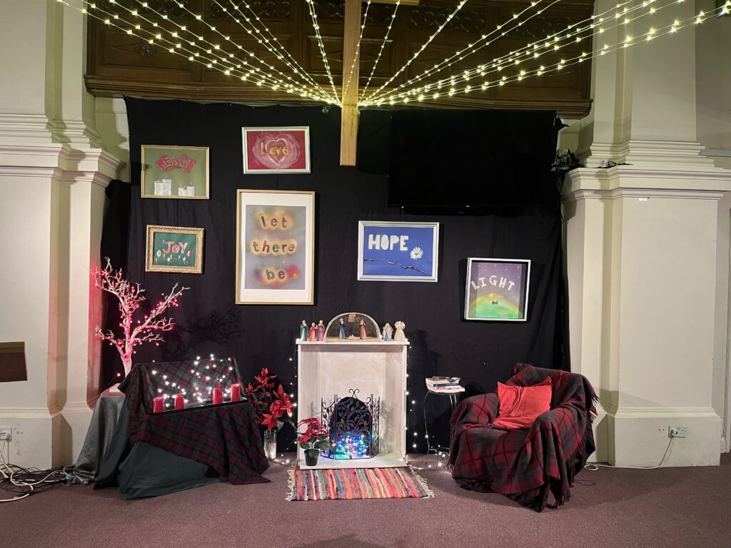 Our theme this Advent and Christmas was ‘Let there be Light’ , so it was appropriate that the church was decorated with lots of lights radiating out from the cross and around the church, creating a bright, yet homely and welcoming feel.