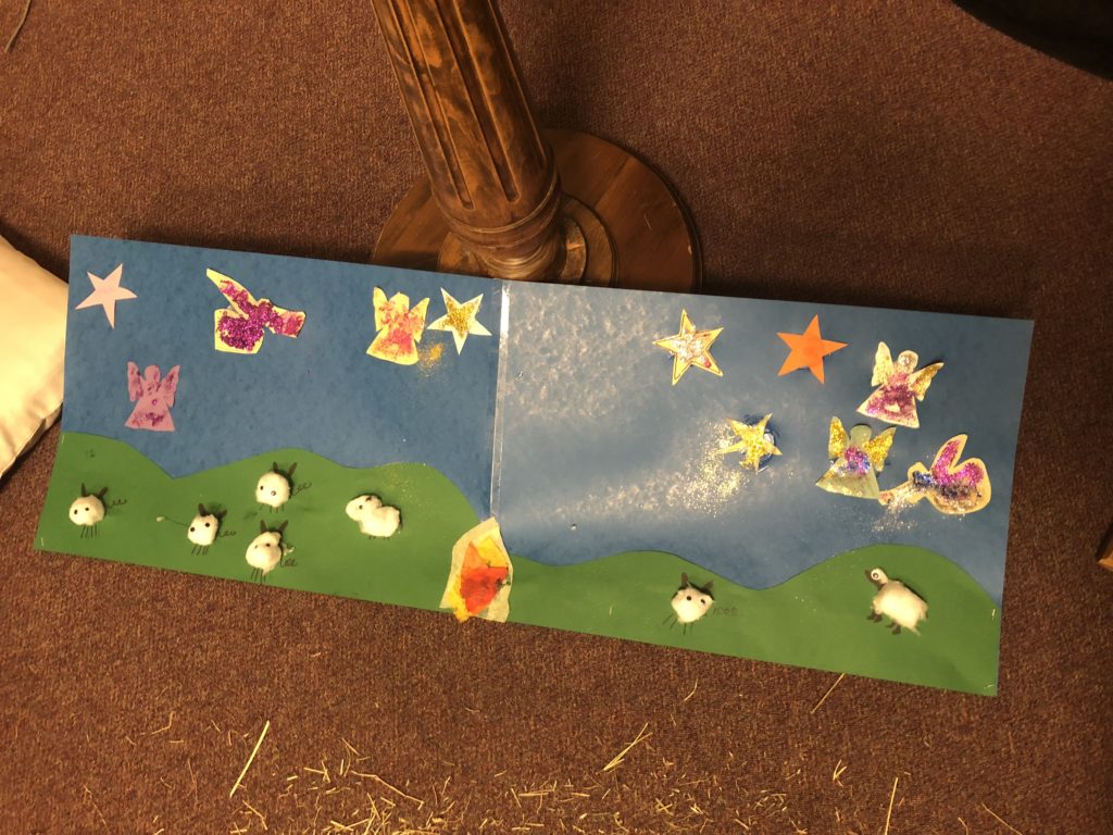 The angels and sheep on the hillside